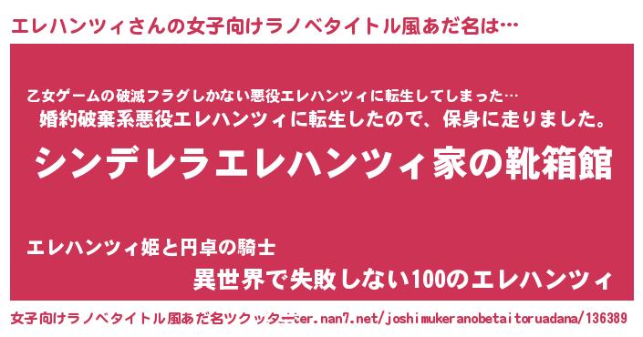 | 男性向けラノベタイトル風あだ名 | 『緋弾のエレハンツィ』 |