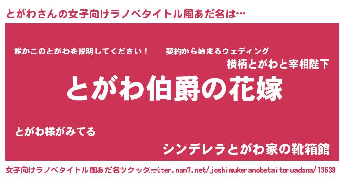 | ヒーロー風カッコイイあだ名 | 『ウルトラとがわマン』『スーパートガワ』 |