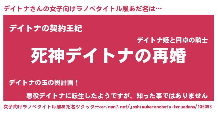 | 男性向けラノベタイトル風あだ名 | 『ノーゲーム・ノーデイトナ』 |