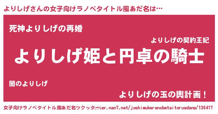 | 胡散臭い通販商品みたいなあだ名 | 『モテモテ間違いなしブレスレット…その名も「よりしげ」』 |