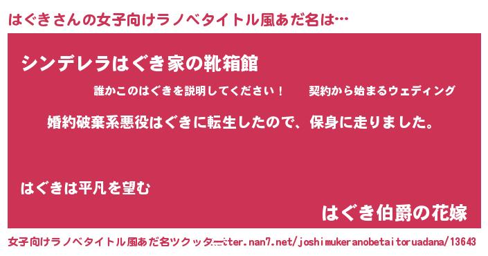 | 男性向けラノベタイトル風あだ名 | 『転生したらはぐきだった件』 |