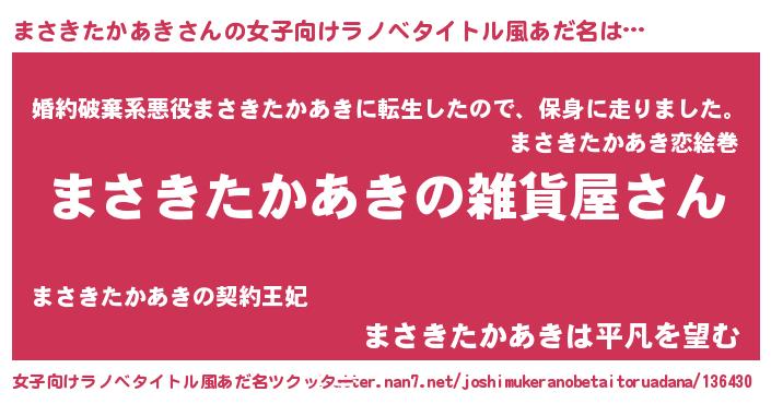 | 男性向けラノベタイトル風あだ名 | 『やはりまさきたかあきの青春ラブコメはまちがっている 』 |