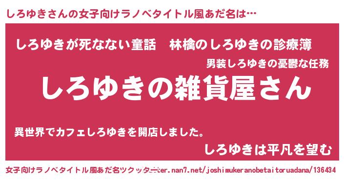 しろゆきさんの女子向けラノベタイトル風あだ名