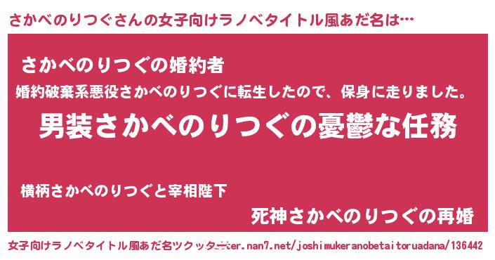| 男性向けラノベタイトル風あだ名 | 『冴えないさかべのりつぐの育てかた』 |