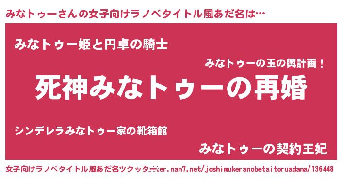 | 伝説のあだ名 | 『救世主となる占い師みなトゥー』 |