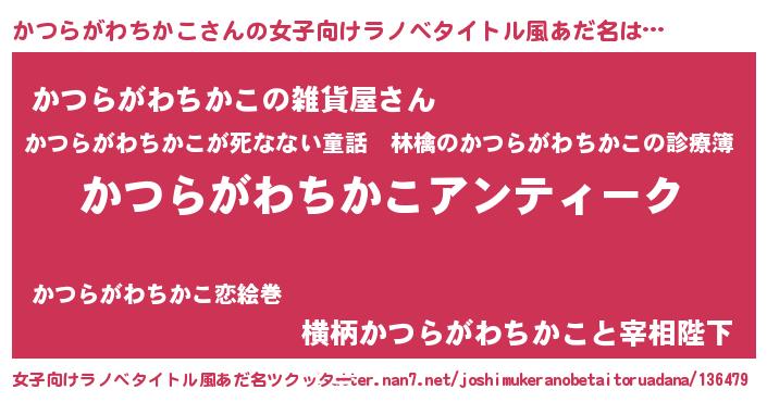 | 男性向けラノベタイトル風あだ名 | 『魔法科高校のかつらがわちかこ』 |