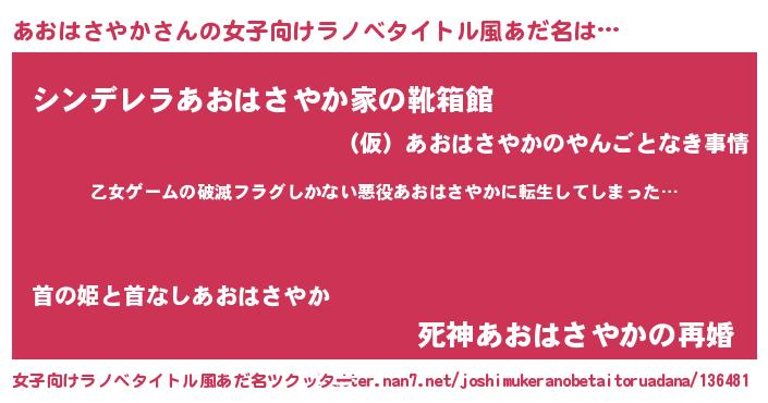 | 男性向けラノベタイトル風あだ名 | 『この素晴らしい世界にあおはさやかを!』 |