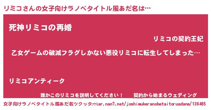 | 男性向けラノベタイトル風あだ名 | 『魔弾の王とリミコ』 |