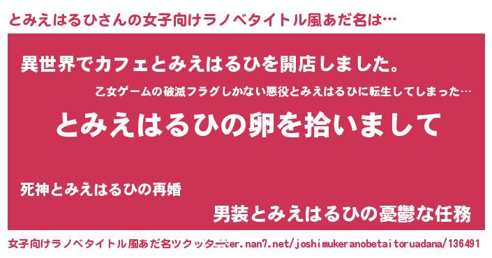 | 男性向けラノベタイトル風あだ名 | 『とみえはるひの嫁は女の子じゃないと思った?』 |
