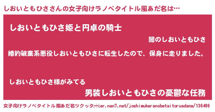 | 胡散臭い通販商品みたいなあだ名 | 『モテモテ間違いなしブレスレット…その名も「しおいともひさ」』 |