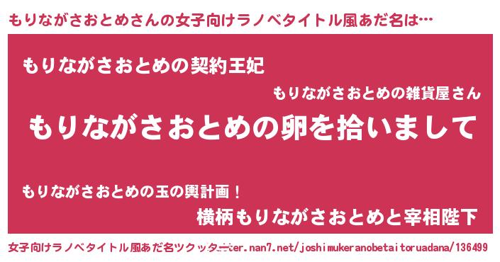 | 意味不明あだ名 | 『とにかく怪しいもりながさおとめ』 |