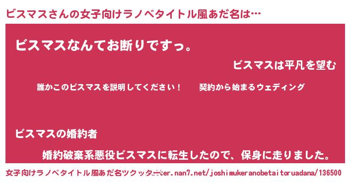 | 男性向けラノベタイトル風あだ名 | 『ビスマスアートオンライン』 |