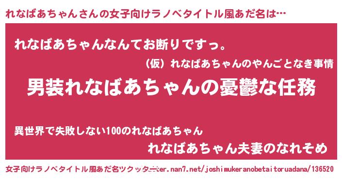 | 男性向けラノベタイトル風あだ名 | 『うちのれなばあちゃんが世界を掌握している!』 |