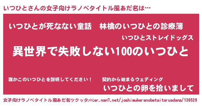 | 男性向けラノベタイトル風あだ名 | 『いつひとという概念が存在しない退屈な世界 』 |