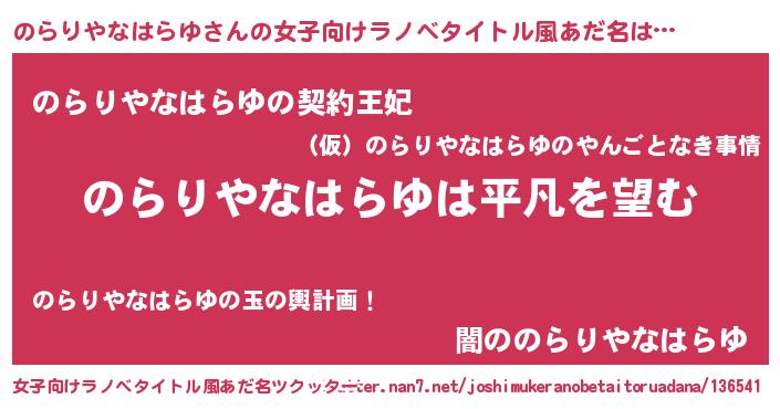 | 男性向けラノベタイトル風あだ名 | 『ダンジョンにのらりやなはらゆを求めるのは間違っているだろうか』 |