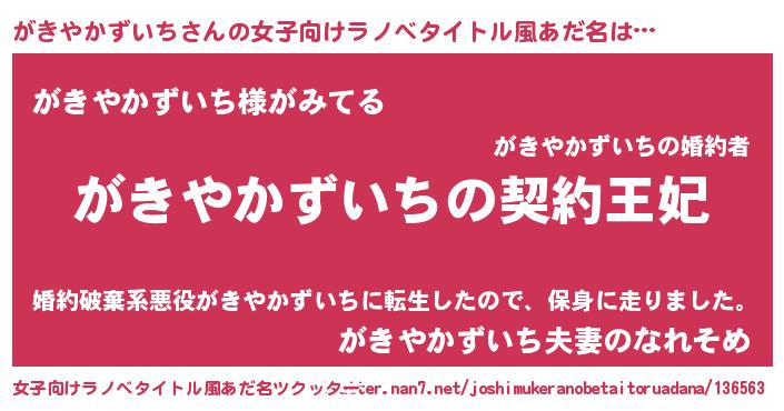 | 男性向けラノベタイトル風あだ名 | 『がきやかずいちという概念が存在しない退屈な世界 』 |