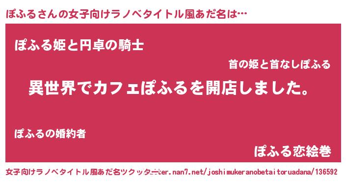 | 男性向けラノベタイトル風あだ名 | 『誰もが恐れるあのぽふるが、ぼくの専属メイドになるようです。』 |