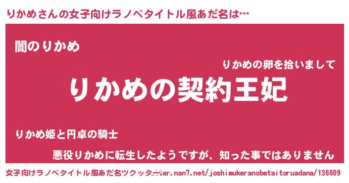| 男性向けラノベタイトル風あだ名 | 『りかめという概念が存在しない退屈な世界 』 |
