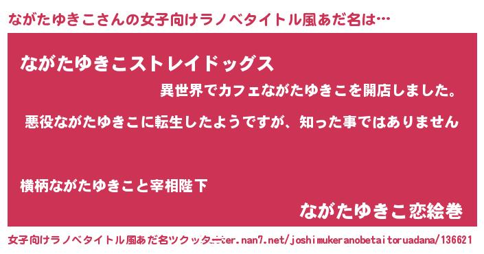 | 意味不明あだ名 | 『住所不定無職ながたゆきこ(84歳)』 |