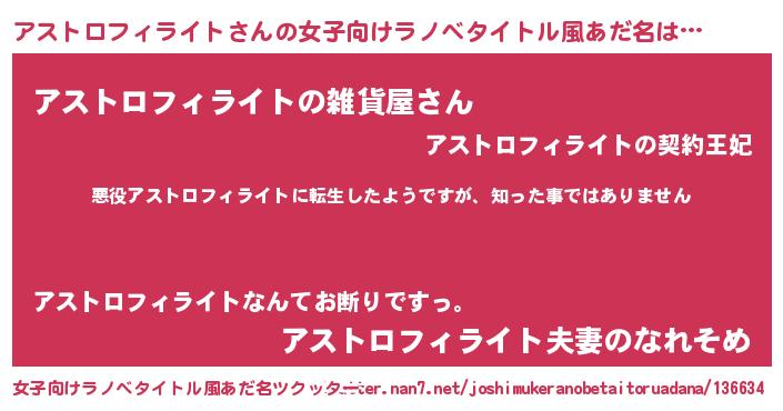 | 男性向けラノベタイトル風あだ名 | 『この素晴らしい世界にアストロフィライトを!』 |