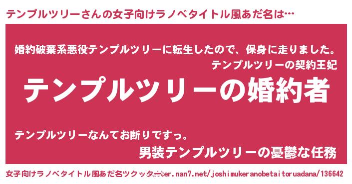 | 男性向けラノベタイトル風あだ名 | 『うちの娘の為ならば、俺はもしかしたらテンプルツリーも倒せるかもしれない。』 |