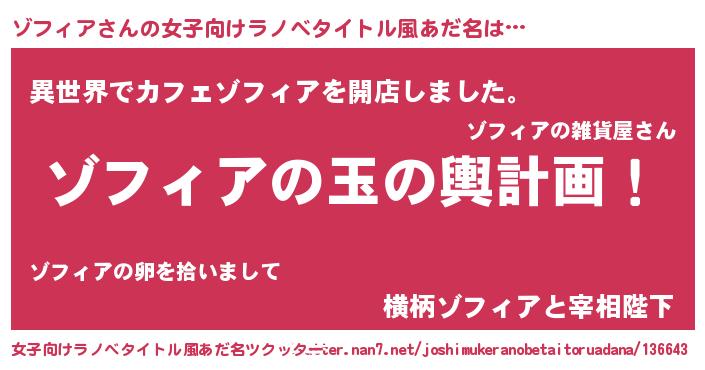 | 男性向けラノベタイトル風あだ名 | 『転生したらゾフィアだった件』 |