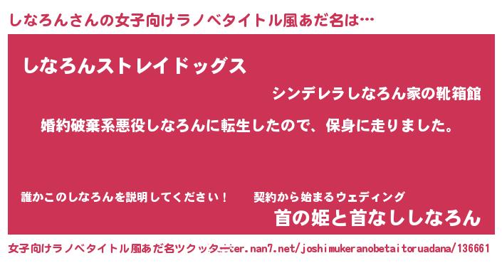 | 胡散臭い通販商品みたいなあだ名 | 『ガンによく効く高麗人参…その名も「しなろん」』 |