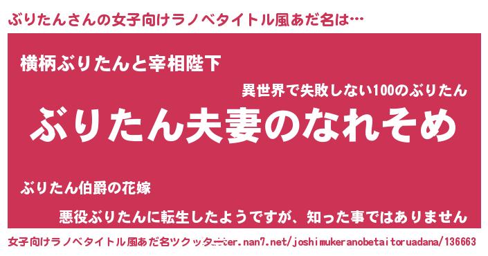 | 料理風あだ名 | 『ぶりたんのトマト煮』 |