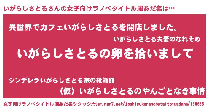 | 男性向けラノベタイトル風あだ名 | 『いがらしさとるの嫁は女の子じゃないと思った?』 |