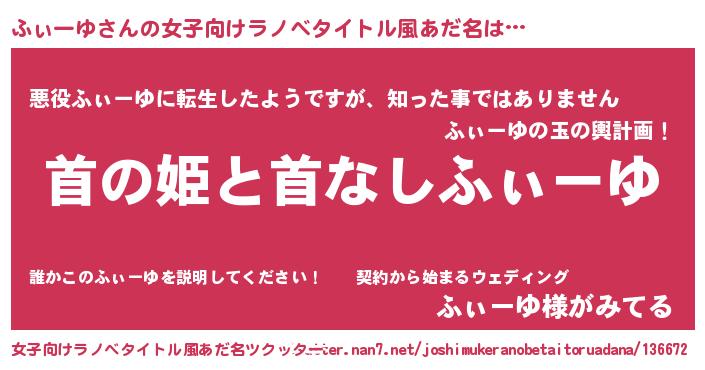 | 男性向けラノベタイトル風あだ名 | 『はたらくふぃーゆさま!』 |
