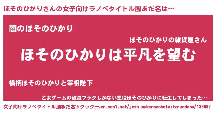 | 胡散臭い通販商品みたいなあだ名 | 『信頼と実績のネックレス…その名も「ほそのひかり」』 |