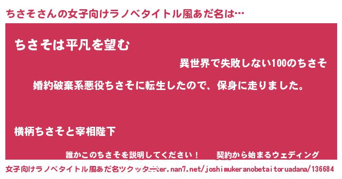 | 胡散臭い通販商品みたいなあだ名 | 『信頼と実績のペンダント…その名も「ちさそ」』 |