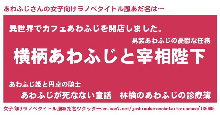 | 意味不明あだ名 | 『永久保存あわふじ』『ペロリンあわふじ』 |