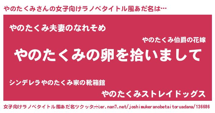 | 男性向けラノベタイトル風あだ名 | 『ダンジョンにやのたくみを求めるのは間違っているだろうか』 |