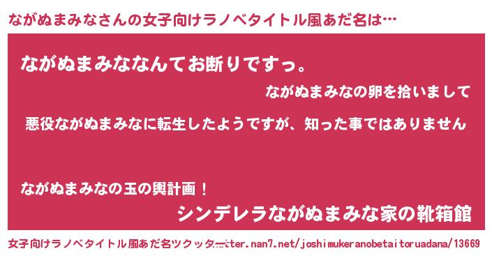 | 意味不明あだ名 | 『住所不定無職ながぬまみな(13歳)』 |