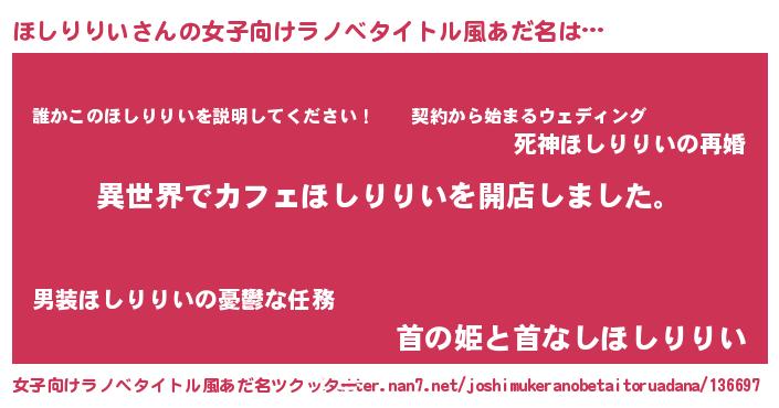 | 男性向けラノベタイトル風あだ名 | 『誰もが恐れるあのほしりりいが、ぼくの専属メイドになるようです。』 |