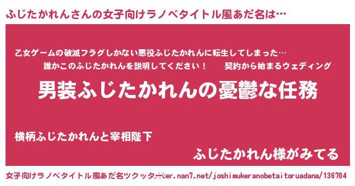 | 男性向けラノベタイトル風あだ名 | 『うちのふじたかれんが世界を掌握している!』 |