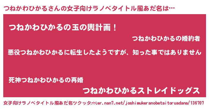 | 男性向けラノベタイトル風あだ名 | 『この素晴らしい世界につねかわひかるを!』 |