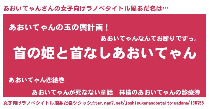 | 胡散臭い通販商品みたいなあだ名 | 『ハリウッド女優が絶賛した100年もののヴィンテージワイン…その名も「あおいてゃん」』 |