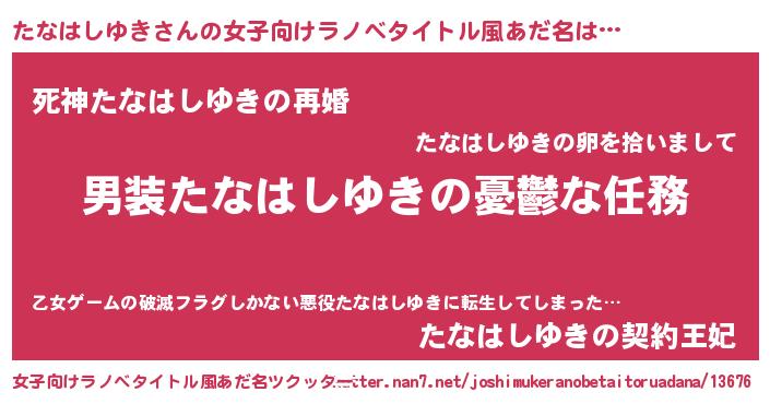 | ヘコむあだ名 | 『たなはしゆき(笑)』『たなぷりん』 |