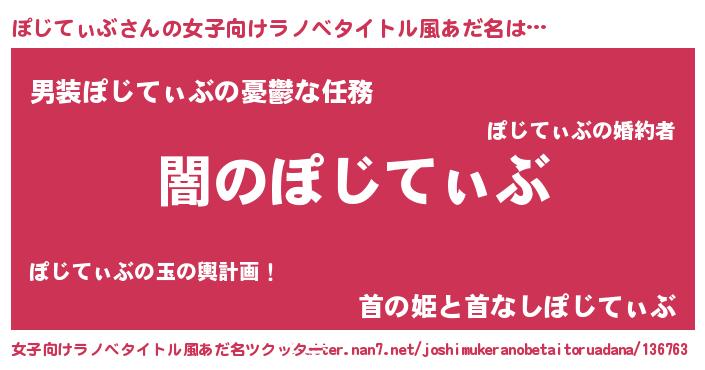| 男性向けラノベタイトル風あだ名 | 『Re:ぽじてぃぶから始める異世界生活』 |
