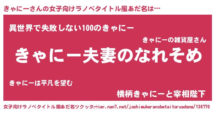 | ヘコむあだ名 | 『きゃにー(笑)』『牛乳』『きゃっ子』 |