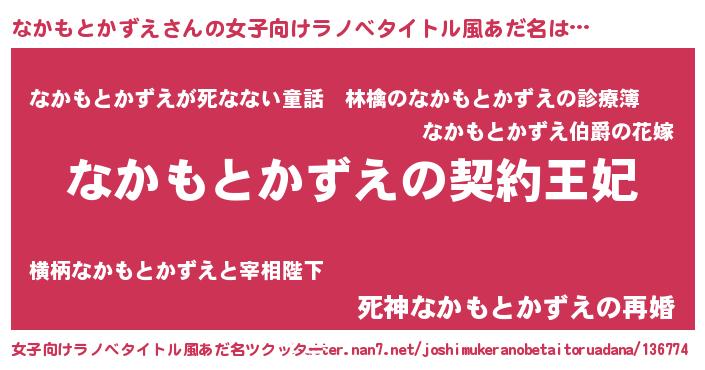 | 胡散臭い通販商品みたいなあだ名 | 『来世でも幸せになれる健康食品…その名も「なかもとかずえ」』 |