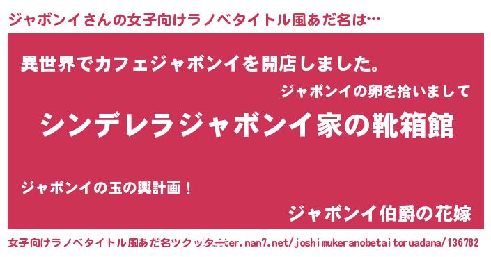 | 男性向けラノベタイトル風あだ名 | 『冴えないジャボンイの育てかた』 |