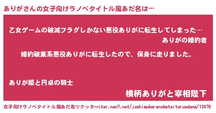 | 胡散臭い通販商品みたいなあだ名 | 『ハリウッド女優が絶賛した世界で10本だけ現存している希少なブランデー…その名も「ありが」』 |