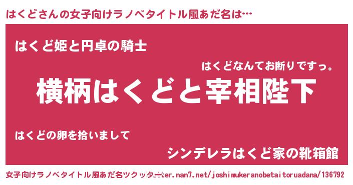 | 自動車の名前っぽいあだ名 | 『ランハクギーニ』『ハクティマ』 |