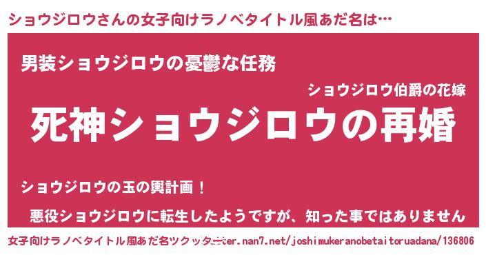 | 男性向けラノベタイトル風あだ名 | 『ノーゲーム・ノーショウジロウ』 |