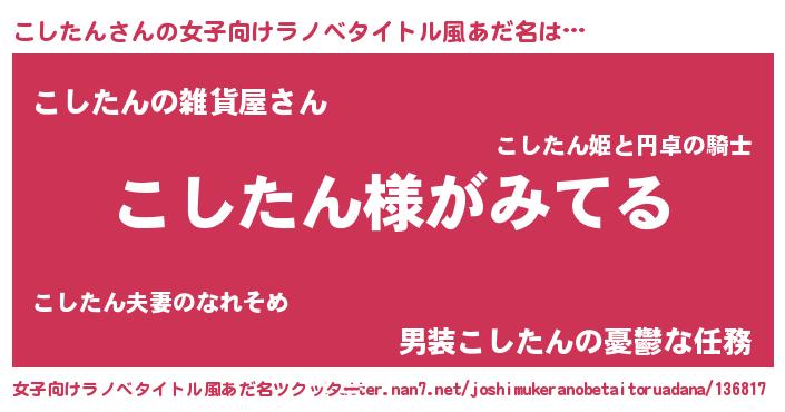 | 男性向けラノベタイトル風あだ名 | 『こしたんの嫁は女の子じゃないと思った?』 |