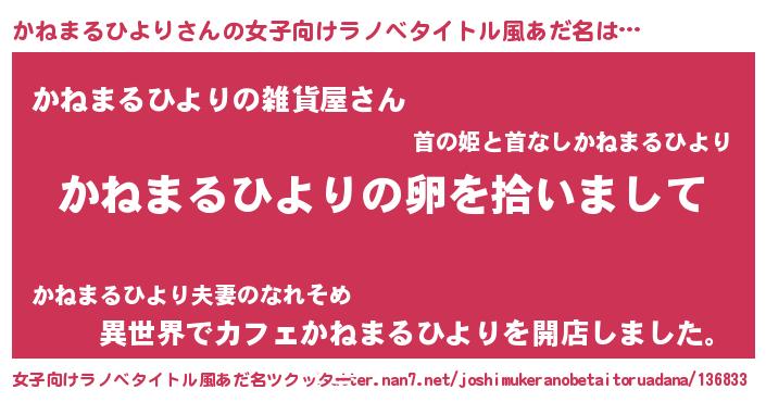 | 男性向けラノベタイトル風あだ名 | 『かねまるひよりの嫁は女の子じゃないと思った?』 |