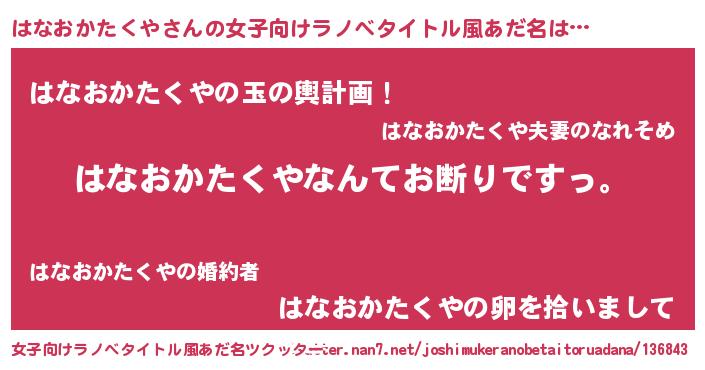 | 男性向けラノベタイトル風あだ名 | 『魔法科高校のはなおかたくや』 |